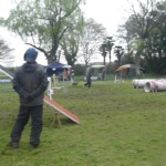 今回の秋ケ瀬でのオプディス アジリティー競技会は、 ジャンピング1度(JP1)とアジリティー2度(AG2)の2種目にエントリーです。 午前中のJP1の時はまだ小ぶりでしたが、午後からは本降りになりました。 雨の中のコース